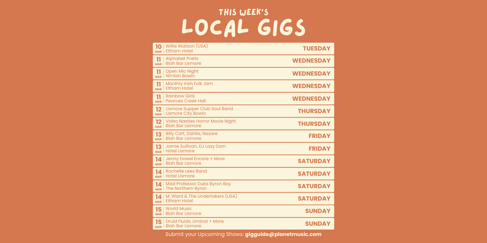 "We want to send a massive thank you to Planet Music for always supporting us with discounted equipment and sound advice"
