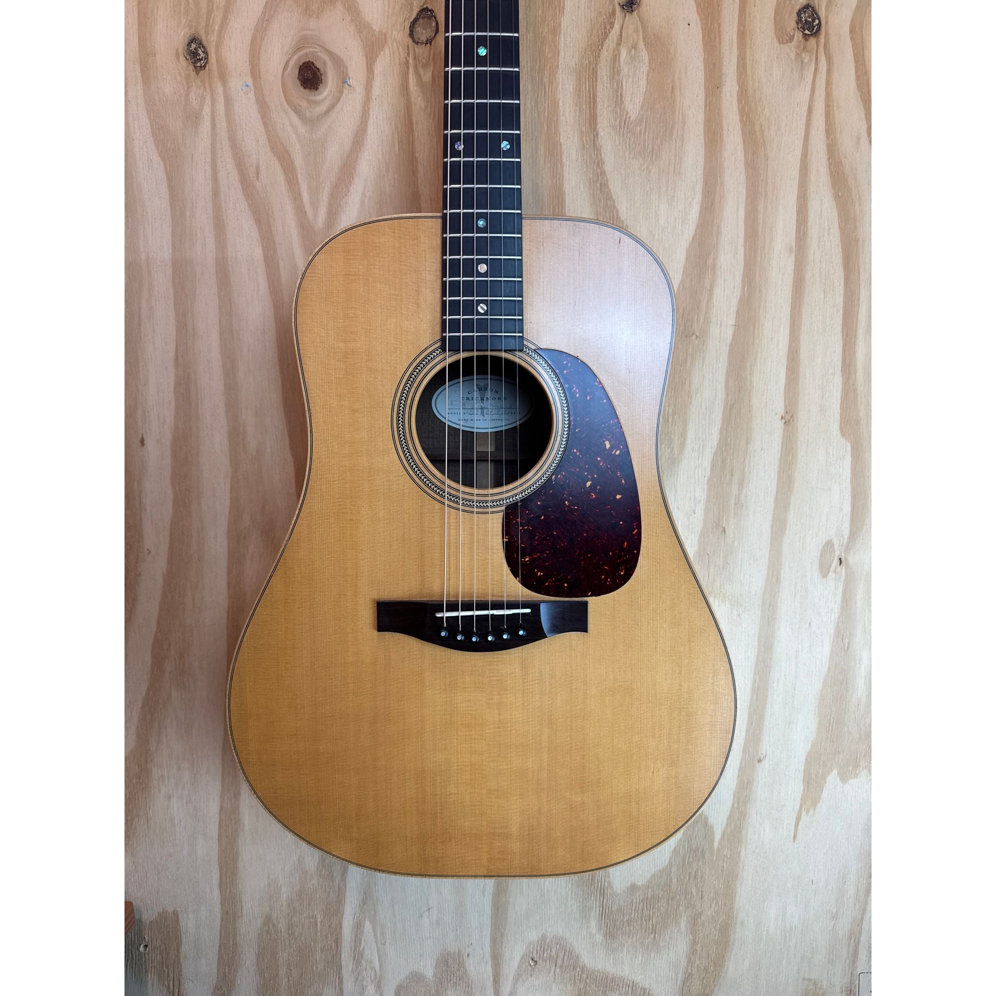 This 2007 Carson Crickmore C2 represents a masterclass in Australian lutherie. The Triple AAA Engelman spruce top delivers responsive, articulate tone with excellent projection, while the blackwood back provides warmth and sustain characteristic of premium tonewoods. Hand-crafted in Australia, this instrument features a tortoiseshell pickguard and mother-of-pearl inlay dots that reflect meticulous attention to detail. The combination of tonewoods and construction quality ensures this guitar has aged gracefully, offering experienced players a refined, balanced voice. Includes hardcase for protection and transport.