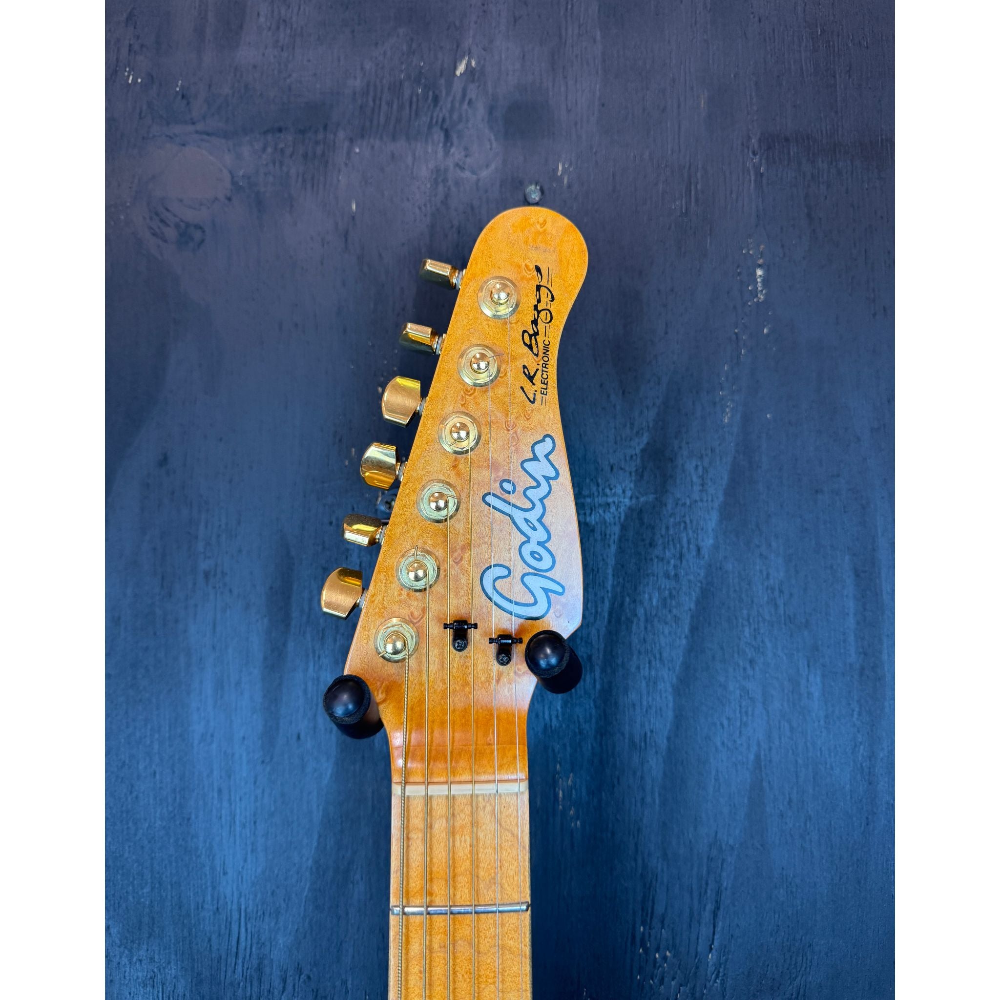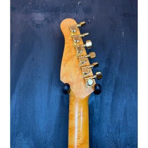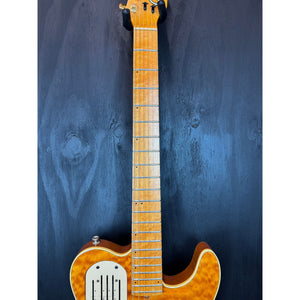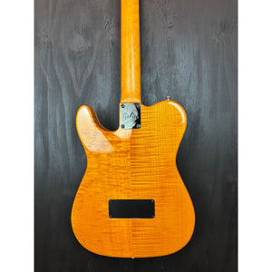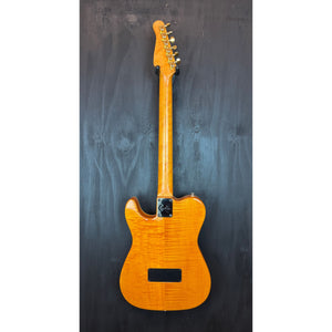 This 1995 Godin Acousticaster is a standout example of Godin’s mid-’90s craftsmanship, built in New Hampshire, USA, with tonewoods sourced and prepped in Quebec, Canada. It features the iconic Telecaster-shaped hollow body with a stunning quilted maple top in a warm amber finish, matched with a high-grade flame maple back that gives it plenty of visual punch while keeping the guitar lightweight and resonant.